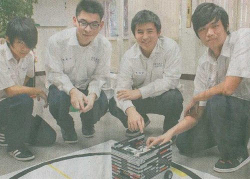 苗栗縣頭份鎮大成高中學生武辰峰、彭祥瑋、陳俊松、風祐華,日前首次參加台灣區機器人運動競技大賽,便拿下自走車相撲組冠軍,讓他們直呼「辛苦終於有了代價!」相約以後要朝照護型機器人應用發展,造福社會。 大成高中資訊技術學程去年起找亞太創意技術學院電機工程系合作,由講師到校內開班授課,讓學生在機器人研發領域精進學習,從程式設計、機具構造到模組設計都能透過操作課程了解。 武辰峰等4名學生費時3個月,腦力激盪不斷測試才完成的「移動碉堡」相撲機器人,本月8日參加台灣區機器人運動競技大賽自走車相撲高中職組比賽,全國共有18所高中職學校參加該組競賽,其中不乏明星學校,但大成高中的「移動碉堡」在賽中以無落敗紀錄拿下冠軍。 這場比賽條件相當嚴苛,限制機器人的長、寬、高都不得大於30公分,重量必須低於10公斤,增添比賽難度,教練葉律佐表示,比賽方式跟日本相撲比賽一樣,先把對方推出指定場地外就獲勝,因此機器人必須配有無線感知、重力推動馬達等多項功能,要做出完全符合這些需求功能的機器人,對高中生來說挑戰性極高。 從小就喜愛玩機器人的武辰峰表示,以前會買積木回來做機器人,上高中後才接觸「會動」的機器人,大家花許多時間與心血打造出的「移動碉堡」,能夠拿下冠軍,到現在還無法相信這是真的。 「本來還以為第一場就會出局」學生彭祥瑋笑著說,賽前看到許多學生設計的機器人都很強,以為初賽完就要打包行李回家,沒想到「移動碉堡」拿到冠軍,大家也相約以後要繼續研發出不同功能的照護型機器人,造福社會。 大成高中除了推動機器人教學,也與成功大學合作舉辦實驗火箭研習營多年,校長鄒紹騰表示,除了基本的學習課程,應該給學生同樣領域不同的刺激,激發潛能,也能培養興趣、提升競爭力。