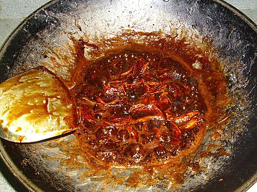 之後要一直炒讓糖薑不燒焦 , 等黑糖慢慢收乾(糖汁濃稠不用"會"一下滴落)